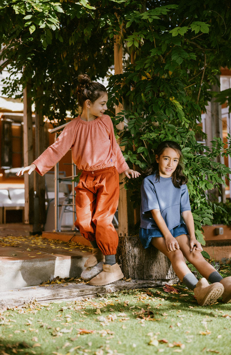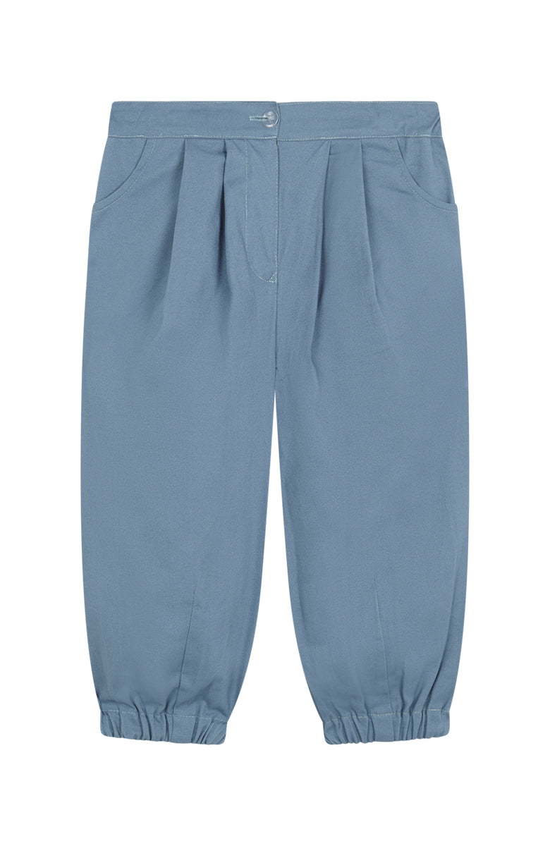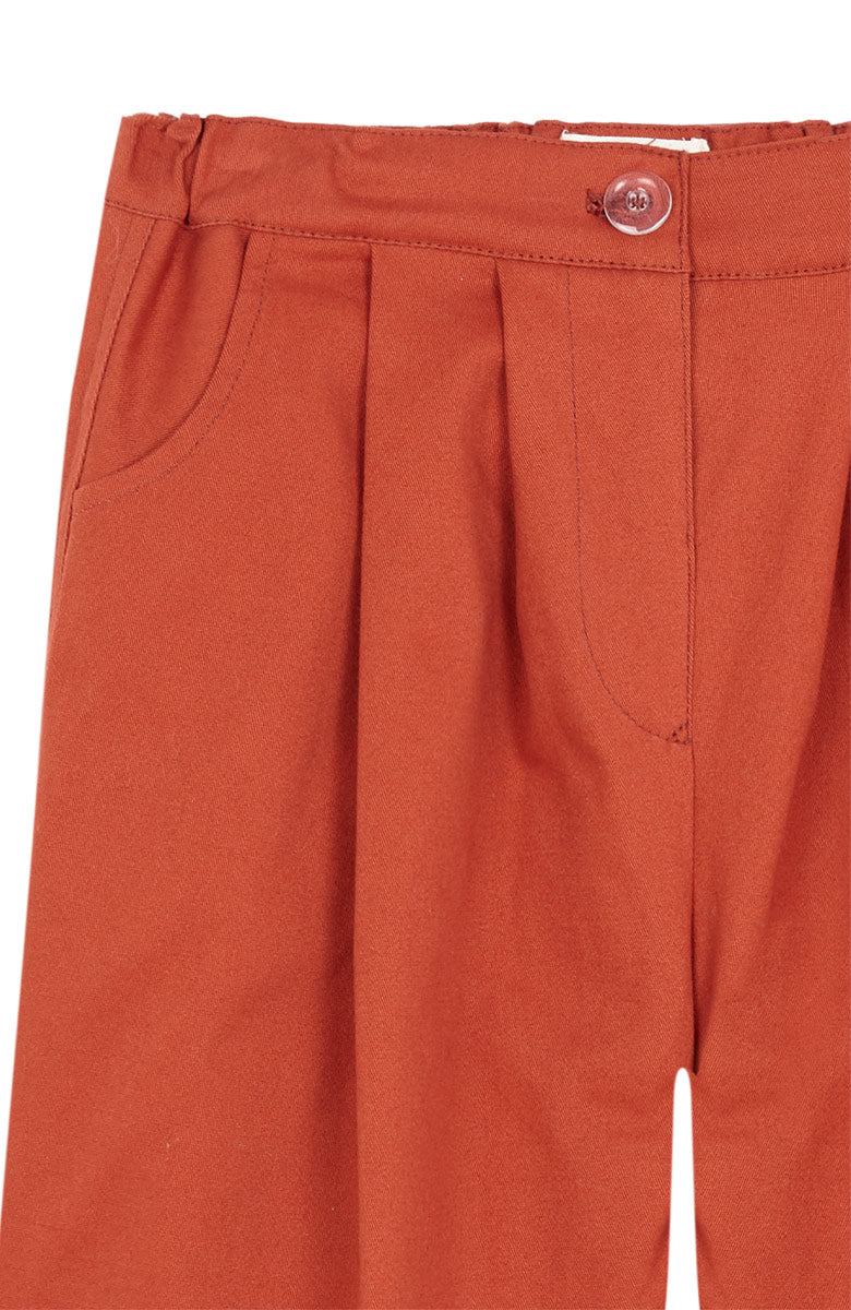 Pantalón de algodón con pinzas en la cintura y en el bajo creando un efecto balloon en color caldera.