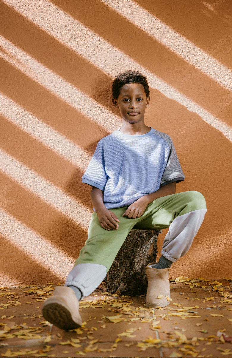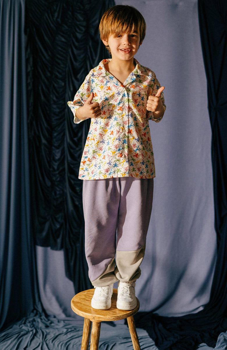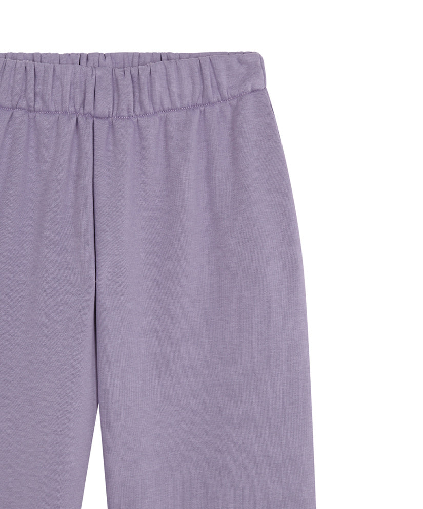 El pantalón Banana está confeccionado en punto de algodón en colores lila/piedra.Se ajusta con goma en cintura y bajos.Con bolsillos laterales.Cierra el conjunto con la sudadera Coconut.