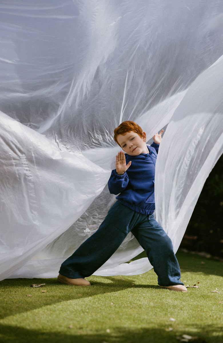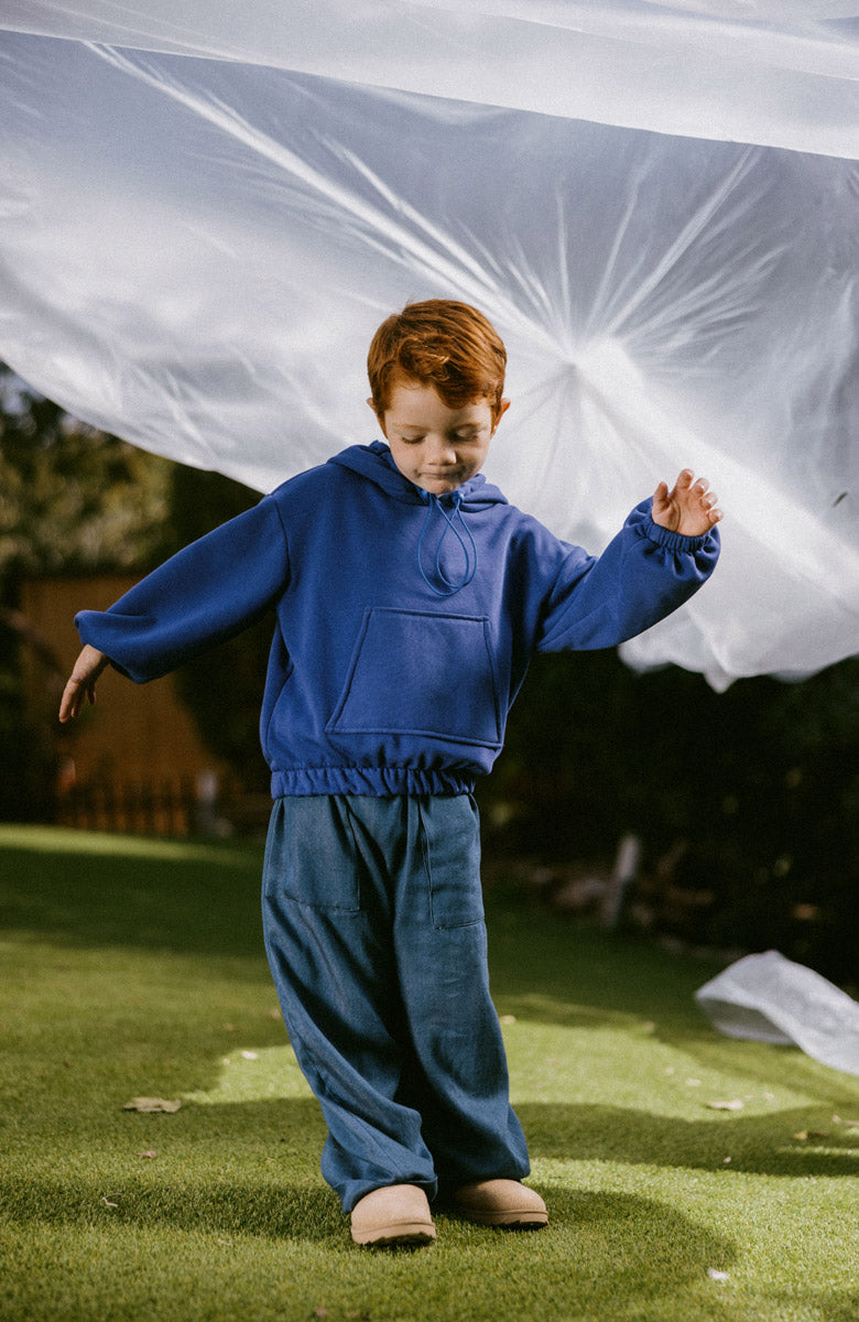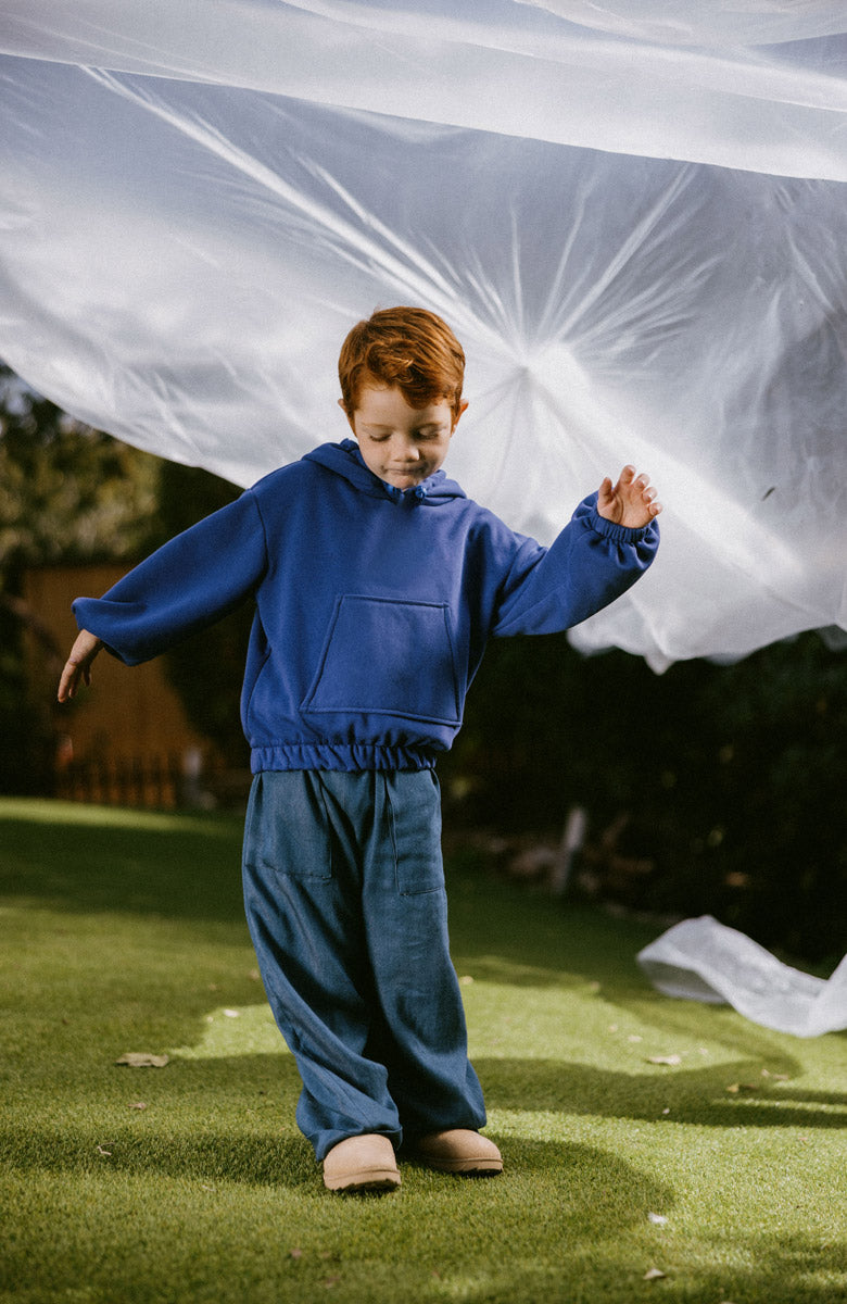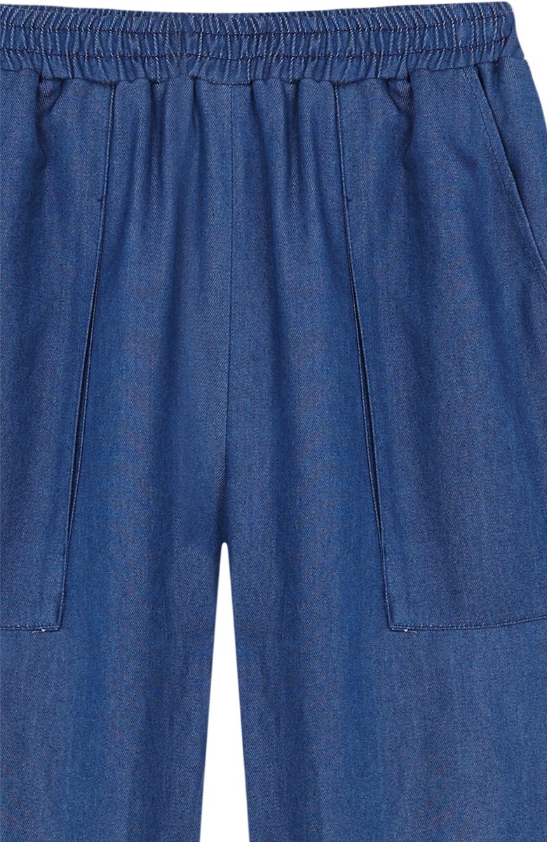 Pantalón en denim, de corte recto con grandes bolsillos y forrado en punto de algodón.